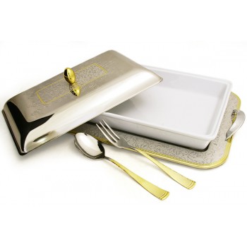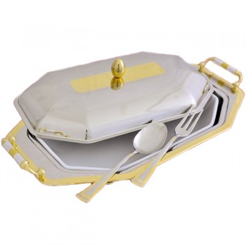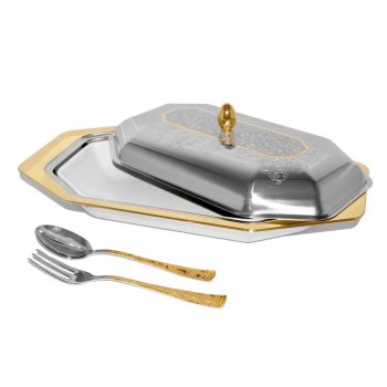 Блюдо для горячего с крышкой на подносе с ложкой и вилкой Dubai, посеребрение, позолота, Giorinox