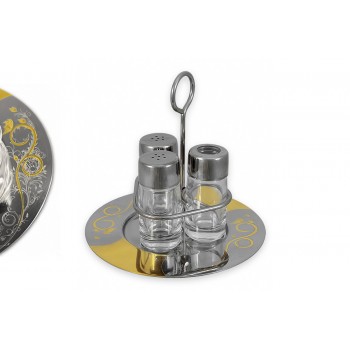 Набор: солонка, перечница, подставка для зубочисток Gold Flower, позолота, Giorinox