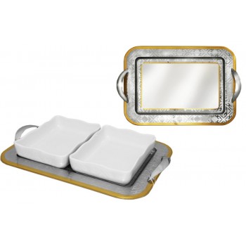 Набор для горячего из 2-х фарфоровых блюд на подносе с ложкой и вилкой Dubai Gold, фарфор, позолота, Giorinox