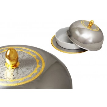 Блюдо для горячего с крышкой и фарфоровой вставкой с вилкой и ложкой Dubai Gold, фарфор, позолота, Giorinox