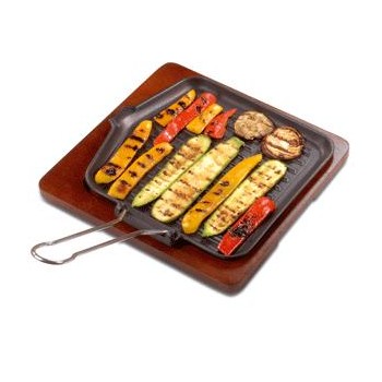 Сковорода-гриль на подставке, H 4 см, L 28 см, W 26 см, чугун, дерево, ILSA