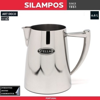 Этикетка "Stellar" (на фото) снимается с корпуса. Посуда марки Silampos изготовлена из высококачественной нержавеющей стали 18/10 - это безопасный и хорошо зарекомендовавший себя сплав хрома и никеля. Серия Art Deco Cafeteria от Silampos - это роскошные изделия для приготовления и сервировки чая и кофе. Элега..