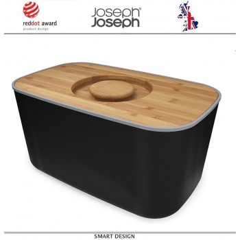 Хлебница с разделочной доской из бамбука, черная, Joseph Joseph, Великобритания