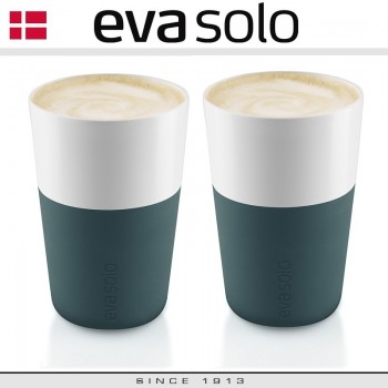 EVA Кофейные стаканы для латте, 2 шт 360 мл, бирюзово-синий, фарфор, силиконовый ободок, Eva Solo, Дания