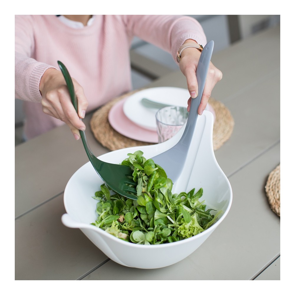Салатница с приборами leaf 2.0, 4 л, бело-серая, Koziol