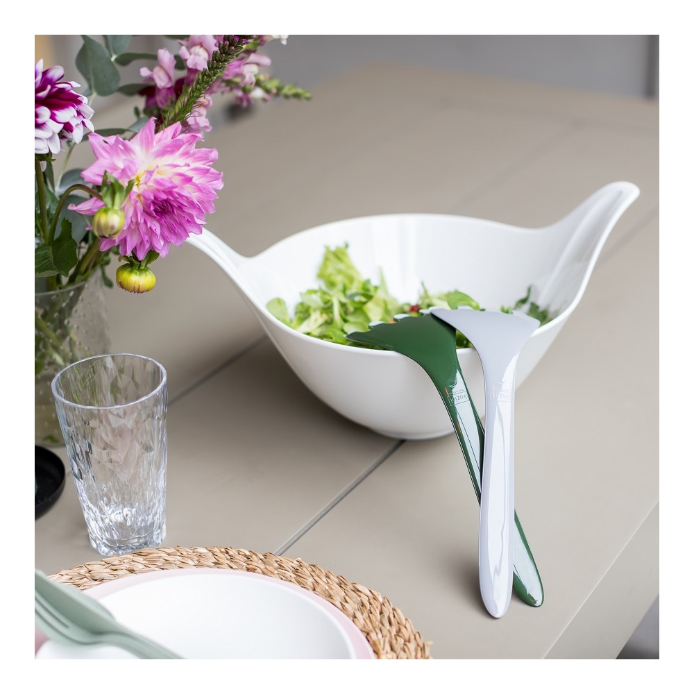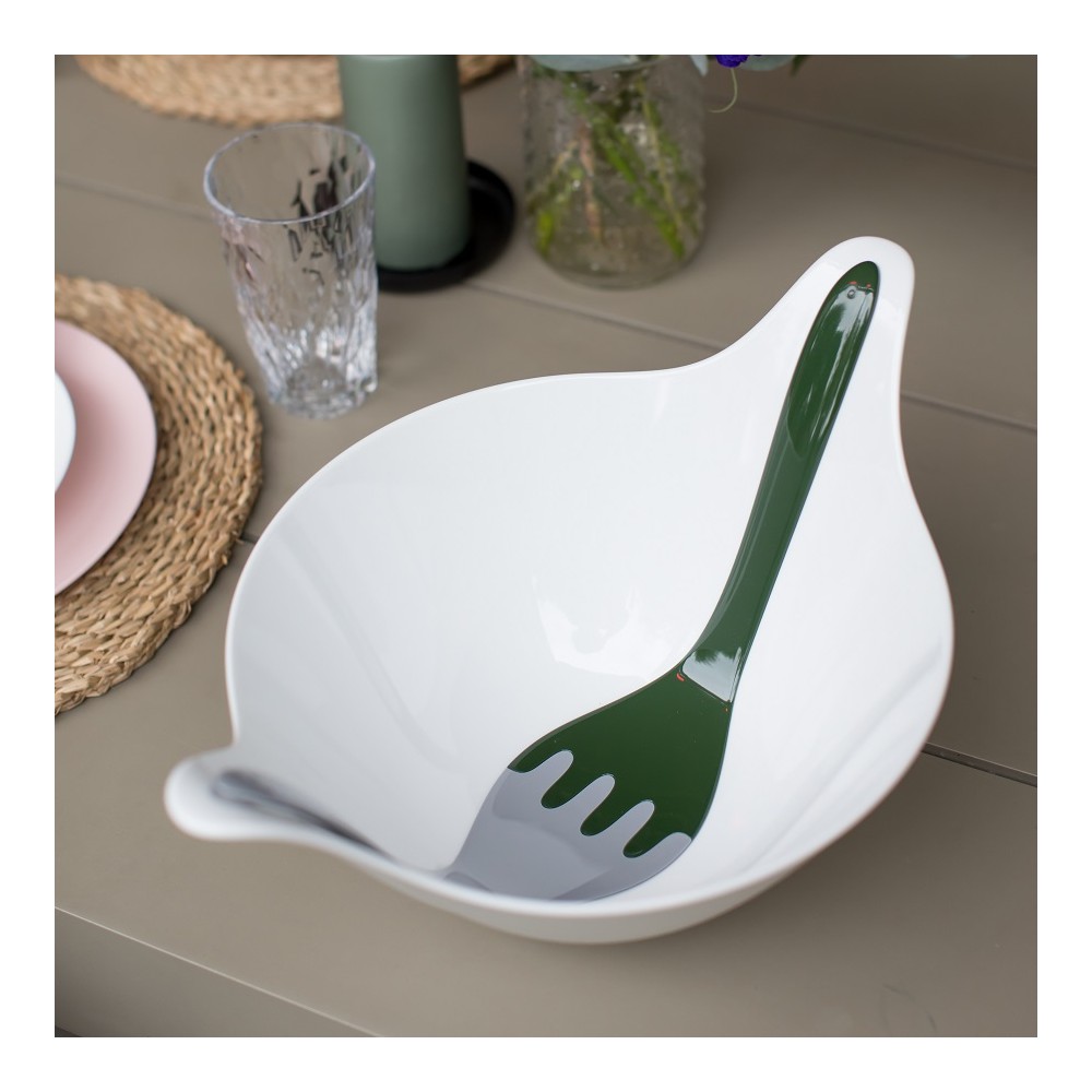 - Салатница с приборами LEAF 2.0 – это универсальная посуда, которой вы можете сервировать стол для обеда или ужина, взять с собой на дачу или пикник.