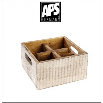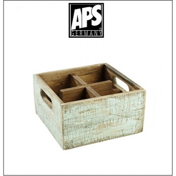 Коллекция APS Vintage - стильные деревянные ящички для хранения и подачи бутылочек масла, уксуса, мельничек для специй и других аксессуаров сервировки. Изготовлены из дерева с состаренной текстурой. 4 ячейки, размером 6.5 см. Высота 10 см. Длина 17 см. Ширина 17 см...