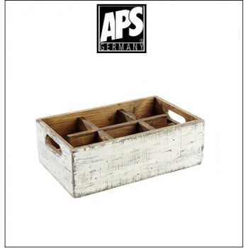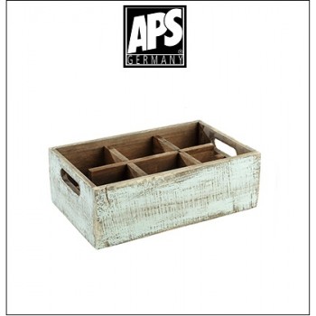 Коллекция APS Vintage - стильные деревянные ящички для хранения и подачи бутылочек масла, уксуса, мельничек для специй и других аксессуаров сервировки. Изготовлены из дерева с состаренной текстурой. 6 ячеек, размером 6.5 см. Высота 10 см. Длина 27 см. Ширина 17 см...