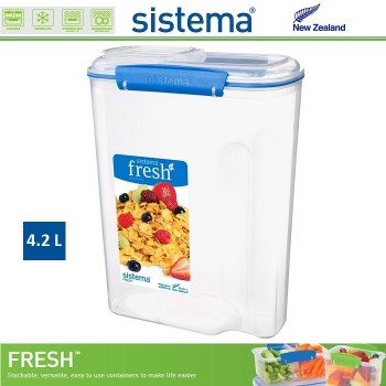 Контейнер для мюсли, хлопьев, FRESH синий, 4.2 л, эко-пластик пищевой, SISTEMA