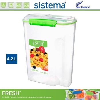 Контейнер для мюсли, хлопьев, FRESH зеленый, 4.2 л, эко-пластик пищевой, SISTEMA