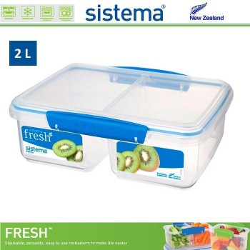 Контейнер двойной, FRESH синий, 2 л, эко-пластик пищевой, SISTEMA