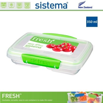 Контейнер двойной, FRESH зеленый, 350 мл, эко-пластик пищевой, SISTEMA