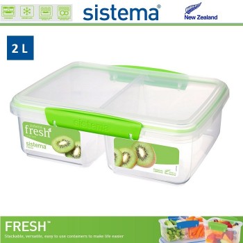 Контейнер двойной, FRESH зеленый, 2 л, эко-пластик пищевой, SISTEMA