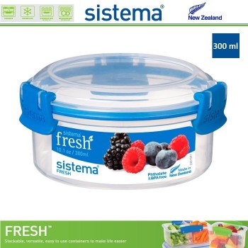 Контейнер круглый, FRESH синий, 300 мл, эко-пластик пищевой, SISTEMA