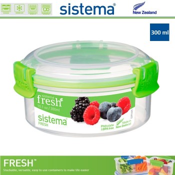 Контейнер круглый, FRESH зеленый, 300 мл, эко-пластик пищевой, SISTEMA