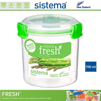Контейнер с вкладышем-корзинкой, FRESH зеленый, 700 мл, эко-пластик пищевой, SISTEMA