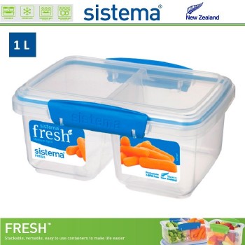 Контейнер двойной, FRESH синий, 1000 мл, эко-пластик пищевой, SISTEMA