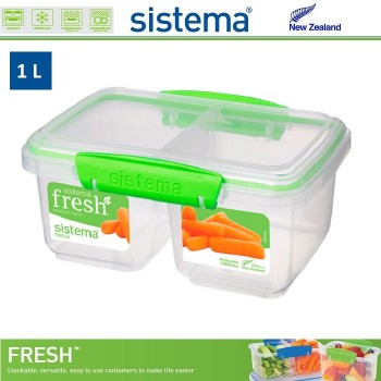 Контейнер двойной, FRESH зеленый, 1000 мл, эко-пластик пищевой, SISTEMA