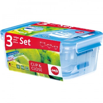 Набор герметичных контейнеров для хранения CLIP & CLOSE, 3 предм., 0,55 л, 1.2 л, 2.3 л, пищевой Emsa