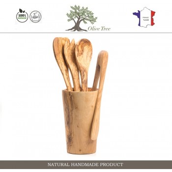 Набор кухонных инструментов, ручная работа, 4 предм в подставке, дерево оливы, Naturally Med