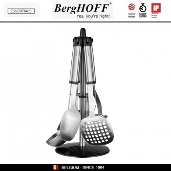 Высококачественные кухонные аксессуары представлены в коллекции ESSENTIALS от бельгийского бренда BergHoff. В наборе 8 предметов: половник, шумовка, лопатка с отверстиями, кулинарная ложка, вилка для мяса, пресс для пюре + подставка + навеска настенного крепления. Удобная ручка. Гипоаллергенная нержавеющая сталь. Рекомендует..