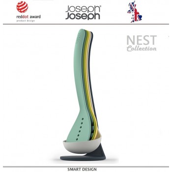 Набор NEST Store включает держатель + 5 кухонных инструментов для любой посуды, вклаючая деликатную антипригарную: половник, ложку-шумовку, ложку для спагетти, ложку для сервировки, лопатку для жарки. Коллекция NEST - это яркие, продуманные до мелочей кухонные инструменты от известного дизайнерского бренда Joseph Jos..