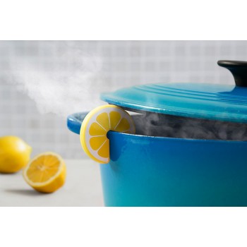 Многие блюда при варке требуют приоткрытой крышки, чтобы выходил пар. Вот максимально свежий вгляд на решение этой проблемы - держатель в виде лимона, который крепится на кастрюлю и оставляет как раз столько места между крышкой и кастрюлей, чтобы выходил лишний пар. Теперь не только коктейльные бокалы можно украшать цитрусовыми для создания праздни..