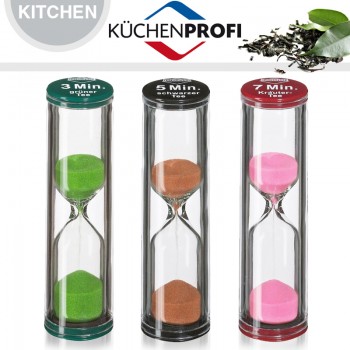 Набор песочных часов для заваривания чая, 3 предмета, стекло, кварц, Kuchenprofi