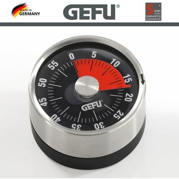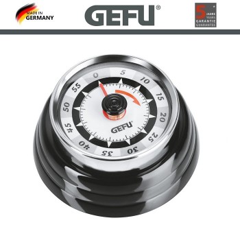 Кухонный таймер RETRO от немецкого бренда GEFU. Корпус из стали, магнит на задней стенке. Таймер от 1 до 60 минут C приспособлениями Gefu вы станете настоящим виртуозом в на кухне! Более 70 лет немецкая компания Gefu производит кухонную утварь высочайшего качества. Головной офис компании располагается в регионе..
