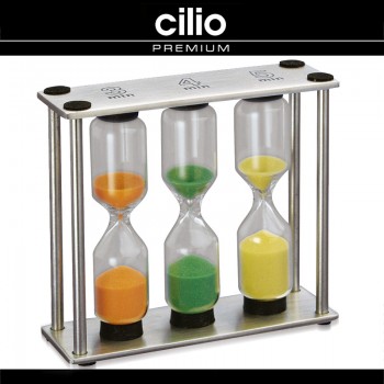 Набор песочных часов от немецкого бренда Cilio для заваривания чая разной степени крепости. 3 минуты - легкая заварка, 4 минуты - заварка средней крепости, 5 минут - хорошо заваренный чай. Колбы из стекла, подставка из стали. Немецкая компания Cilio основана в Германии (Золинген) в 1993 году. Изделия объе..