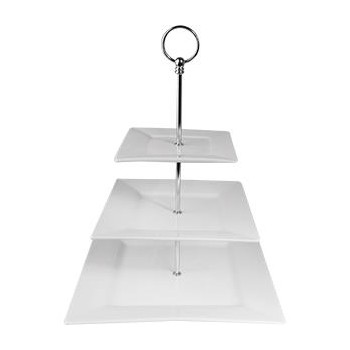 Стильное решение для сервировки пирожных на обеденном столе. Прекрасно подходит как для праздничных дней, так и для воскресных чаепитий. Изготовлена из фарфора и нержавеющей стали. Размеры: верхнее блюдо - 17х17 см, среднее - 22х22 см, нижнее - 30х30 см. Можно мыть вручную или в посудомоечной машине. Поставляется в раз..