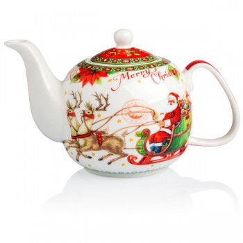 Чайник 24см "Дед Мороз на санях", Фарфор, LAMART, Италия