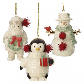Набор новогодних украшений Lenox "Дед Мороз, Снеговик, Пингвин" 9см, 3шт, п/к, Твёрдый фарфор, Lenox, США