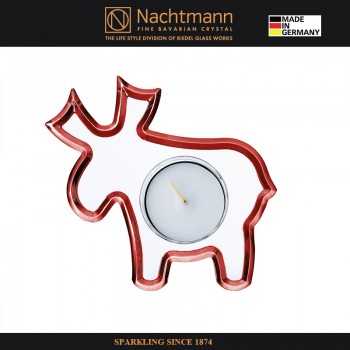 Новогодний подсвечник CRYSTAL CHRISTMAS олень красная кайма, 11 см, хрусталь, Nachtmann