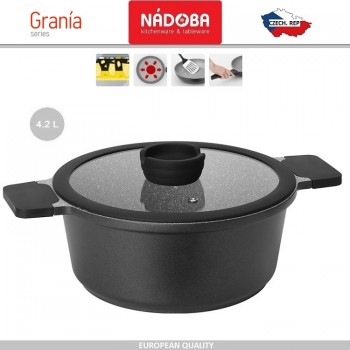 GRANIA Антипригарная кастрюля, индукционное дно, 4.2 л, D 24 см, литой алюминий, минеральное покрытие, Nadoba