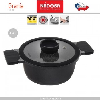 GRANIA Антипригарная кастрюля, индукционное дно, 2.4 л, D 20 см, литой алюминий, минеральное покрытие, Nadoba
