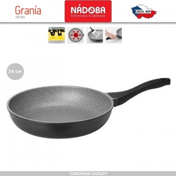 GRANIA Антипригарная сковорода, индукционное дно, D 24 см, литой алюминий, минеральное покрытие, Nadoba