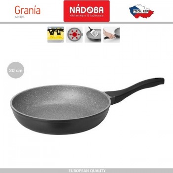 GRANIA Антипригарная сковорода, индукционное дно, D 20 см, литой алюминий, минеральное покрытие, Nadoba