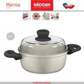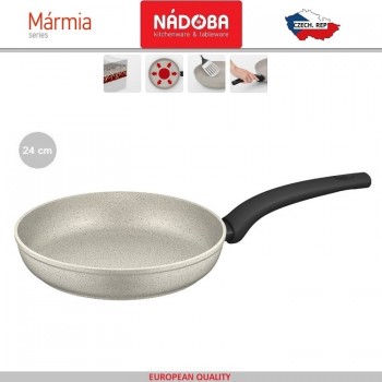 Посуда Nadoba серии Marmia изготовлена из литого алюминия с использованием особо прочного 5-слойного антипригарного титанового покрытия QuanTanium, которое является самым прочным в линейке производителя. Антипригарное покрытие QuanTanium отвечает высоким европейским требованиям к безопасности посуды и НЕ содержит PFOA, кадмий, свинец..