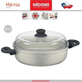 MARMIA Антипригарная сковорода-сотейник MARMIA, индукционное дно, D 28 см, титановое покрытие, Nadoba