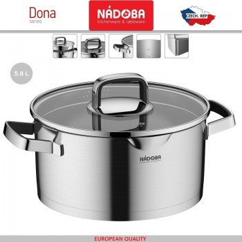 DONA Кастрюля, индукционное дно, D 24 см, 5.8 л, нержавеющая сталь 18/10, Nadoba