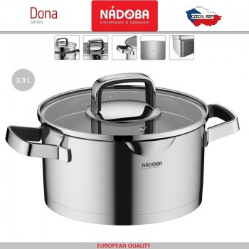DONA Кастрюля, индукционное дно, D 20 см, 3.3 л, нержавеющая сталь 18/10, Nadoba