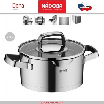 DONA Кастрюля, индукционное дно, D 18 см, 2.3 л, нержавеющая сталь 18/10, Nadoba