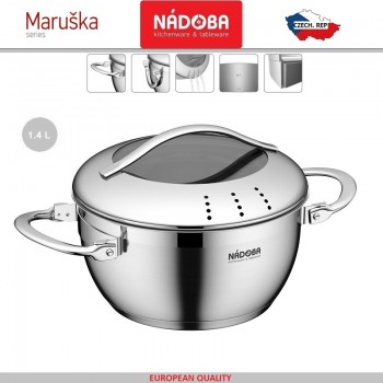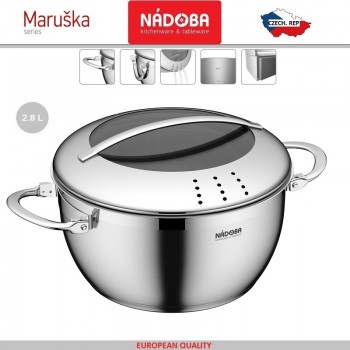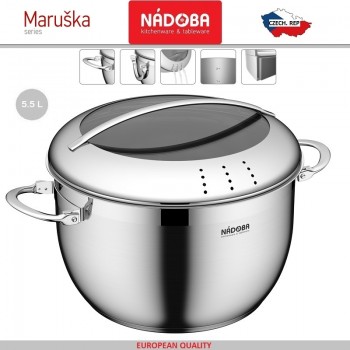 Посуда Nadoba серии Maruska изготовлена из высококачественной нержавеющей стали 18/10. Прочное трехслойное капсульное дно изделий служит для равномерного распределения тепла по всей площади посуды. Встроенный дуршлаг на крышках посуды серии делают процесс слива воды простым и легким. При этом для изготовления крышки использовалось термостойкое зака..
