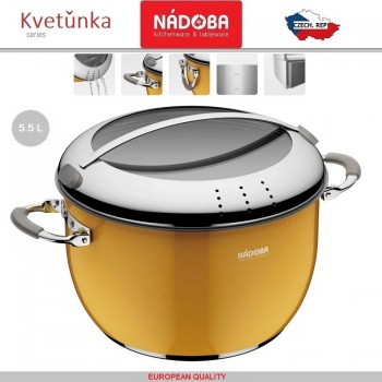 KVETUNKA Кастрюля, индукционное дно, D 24 см, 5.5 л, нержавеющая сталь 18/10, цвет желтый, Nadoba, Чехия