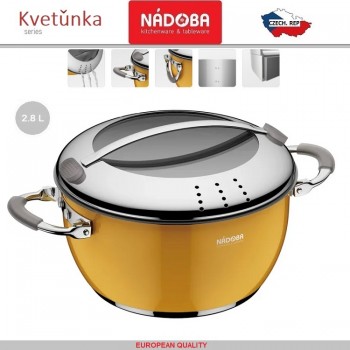 KVETUNKA Кастрюля, индукционное дно, D 20 см, 2.6 л, нержавеющая сталь 18/10, цвет желтый, Nadoba, Чехия