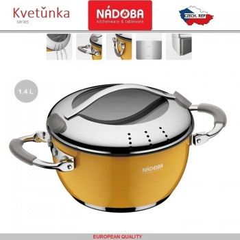KVETUNKA Кастрюля, индукционное дно, D 16 см, 1.4 л, нержавеющая сталь 18/10, цвет желтый, Nadoba, Чехия
