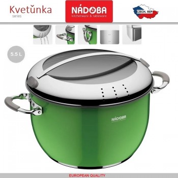 KVETUNKA Кастрюля, индукционное дно, D 24 см, 5.5 л, нержавеющая сталь 18/10, цвет зеленый, Nadoba, Чехия