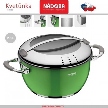 KVETUNKA Кастрюля, индукционное дно, D 20 см, 2.6 л, нержавеющая сталь 18/10, цвет зеленый, Nadoba, Чехия