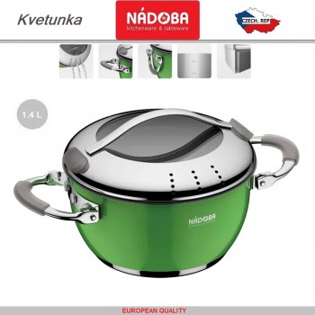 KVETUNKA Кастрюля, индукционное дно, D 16 см, 1.4 л, нержавеющая сталь 18/10, цвет зеленый, Nadoba, Чехия